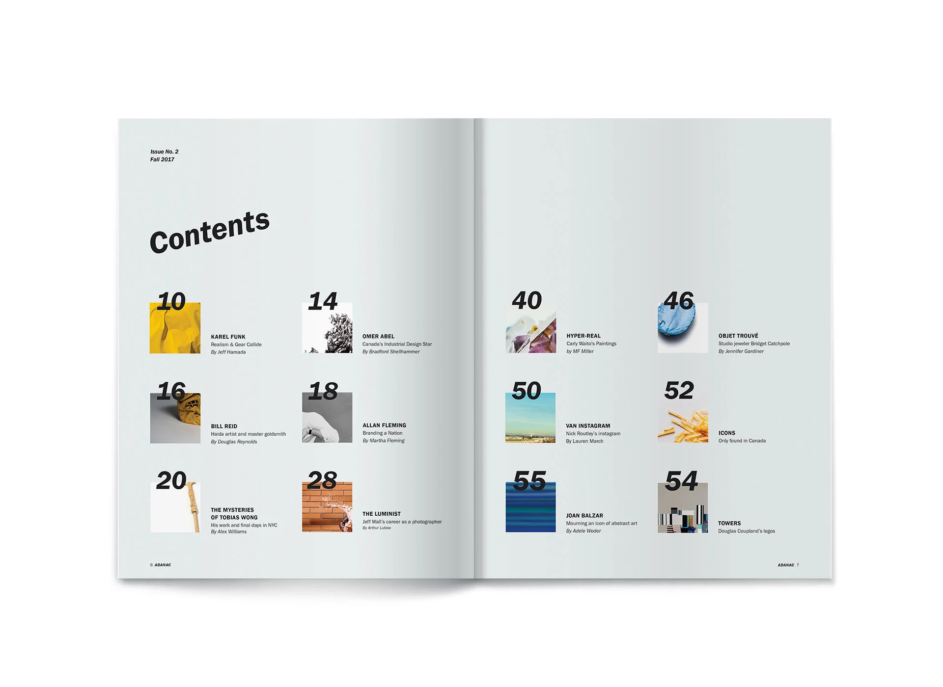 Given the opportunity to create our own magazine in design school, including a complete issue, was an exciting challenge. I knew right away that I wanted to celebrate Canadian Art and Design. My roles included: Art Direction, layout design, typography, branding, editing and copywriting. I strove to create a colourful and clean magazine that lets the art and design shine and a wordpress website that is full of content and easy to navigate.